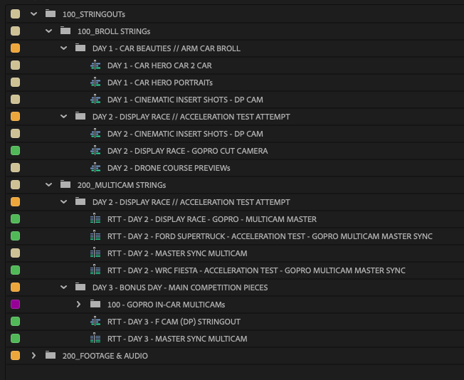 30+ camera multi-cam production. Full on-set DIT coverage — including adapting the DP's arm car LUT across all cameras on set for consistent color throughout the package. Back at the StringOut facility, all media was synced, logged, and delivered as a fully structured Premiere Pro Productions project.